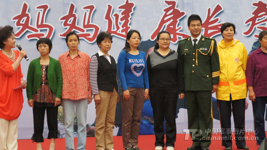 军旅歌手彭高平与母亲们合影 (曹磊摄)